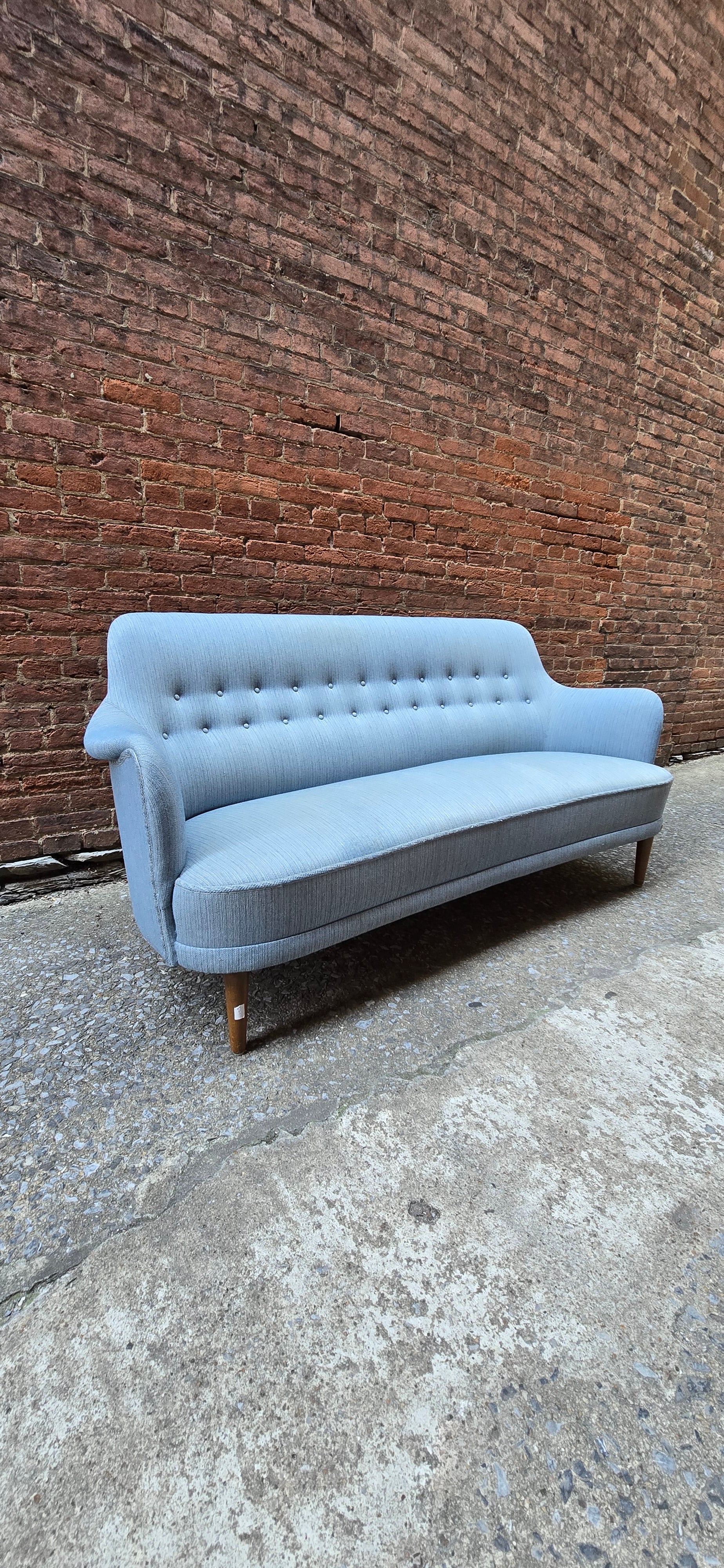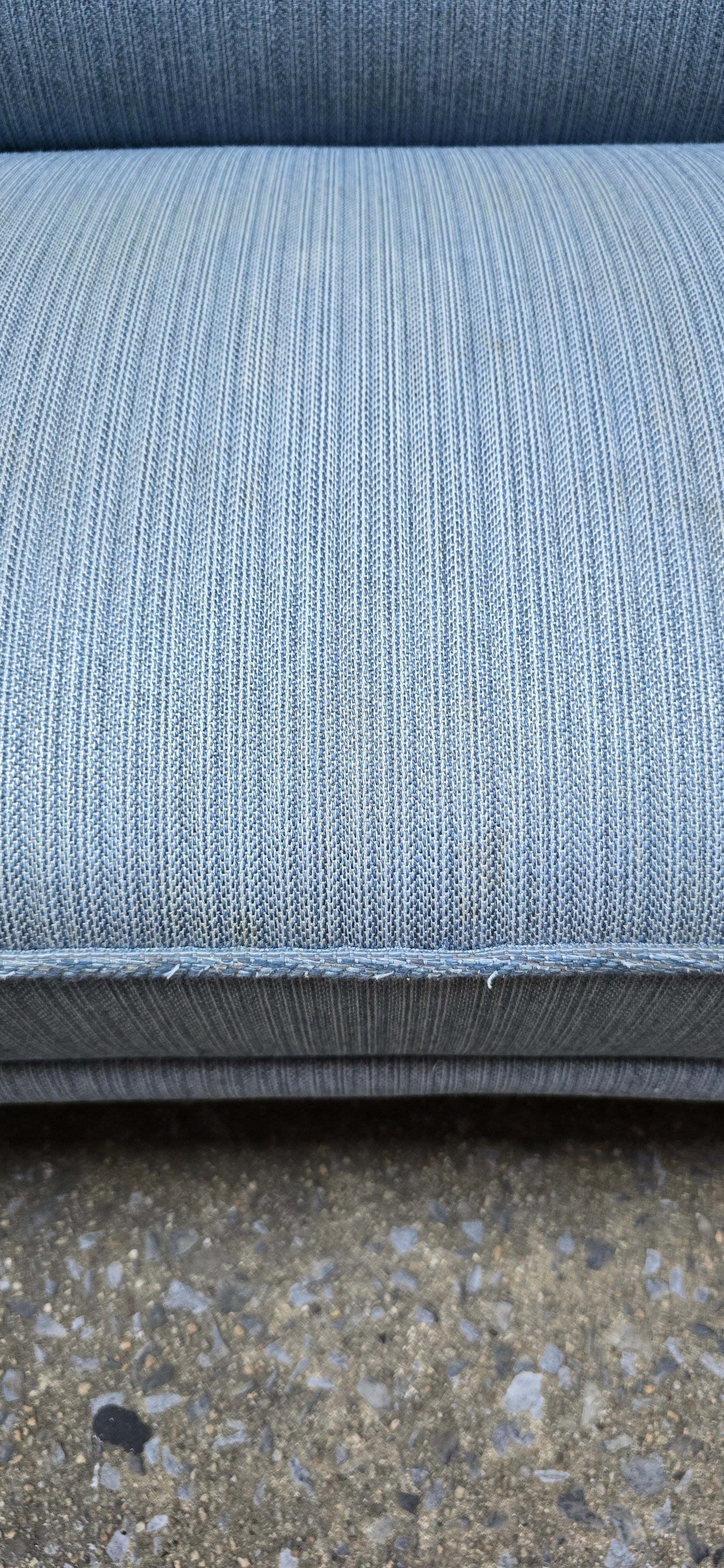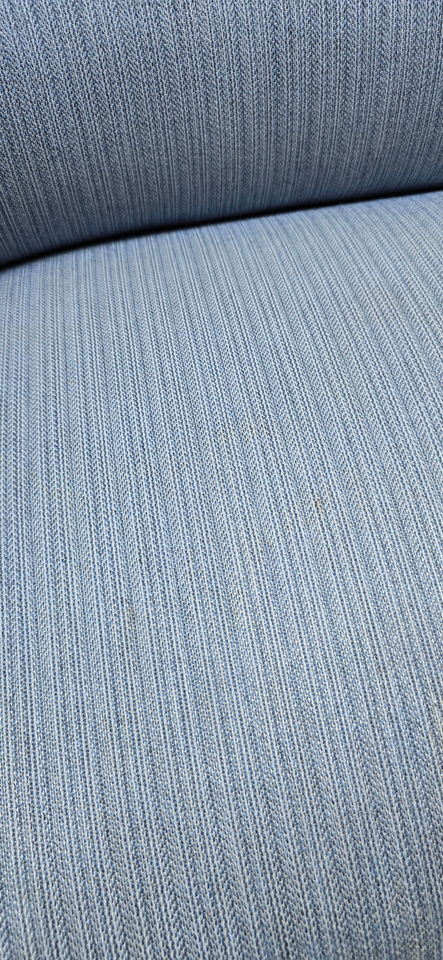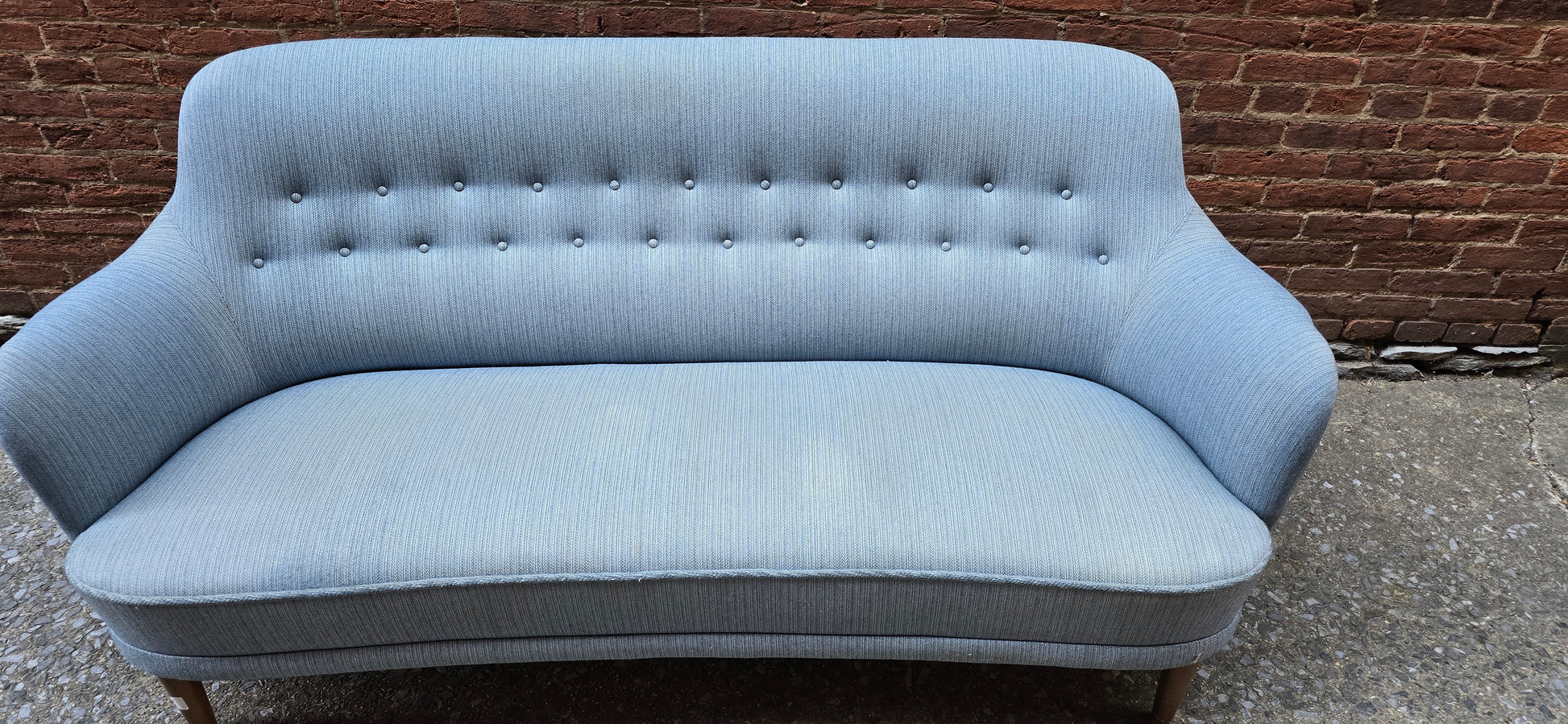 This Sofa was imported from Denmark. It has the original fabric and had some staining. See photos. We can connect you with an upholstery person if you'd like an update.