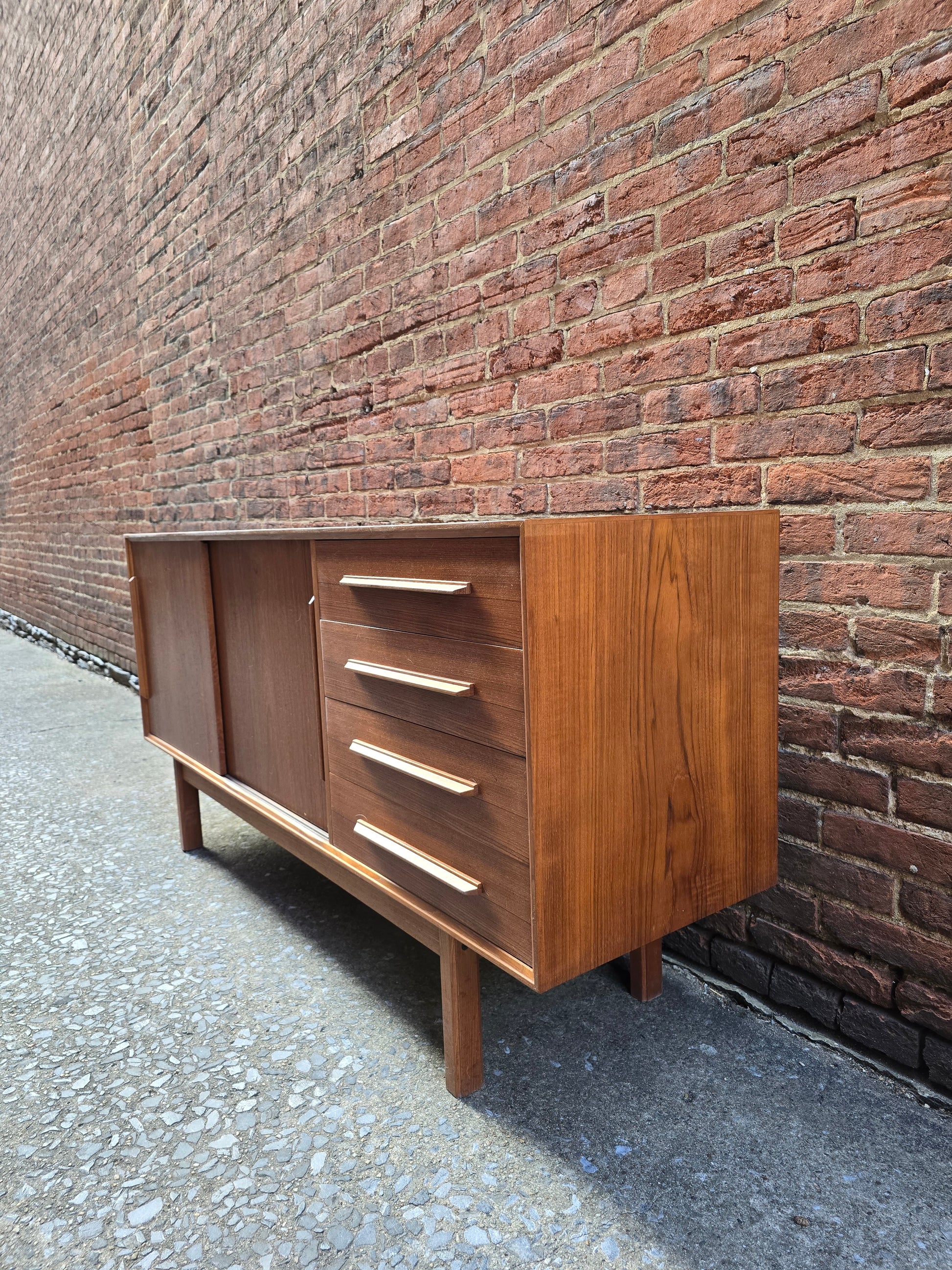 This beautifully proportioned Danish teak credenza is a striking example of classic mid-century modern design from the 1960s. Freshly refinished by Vintage MC, the warm teak grain has been fully restored to a rich, glowing finish that highlights the natural beauty of the wood while preserving its vintage character.