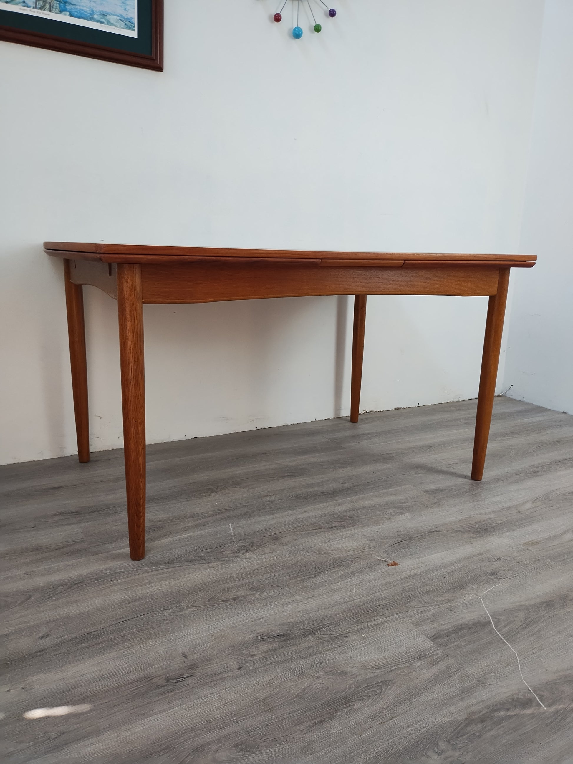 This beautifully crafted Danish teak dining table offers timeless mid-century style and exceptional functionality. Designed with clean Scandinavian lines and rich, warm teak grain, it’s the perfect blend of form and function.