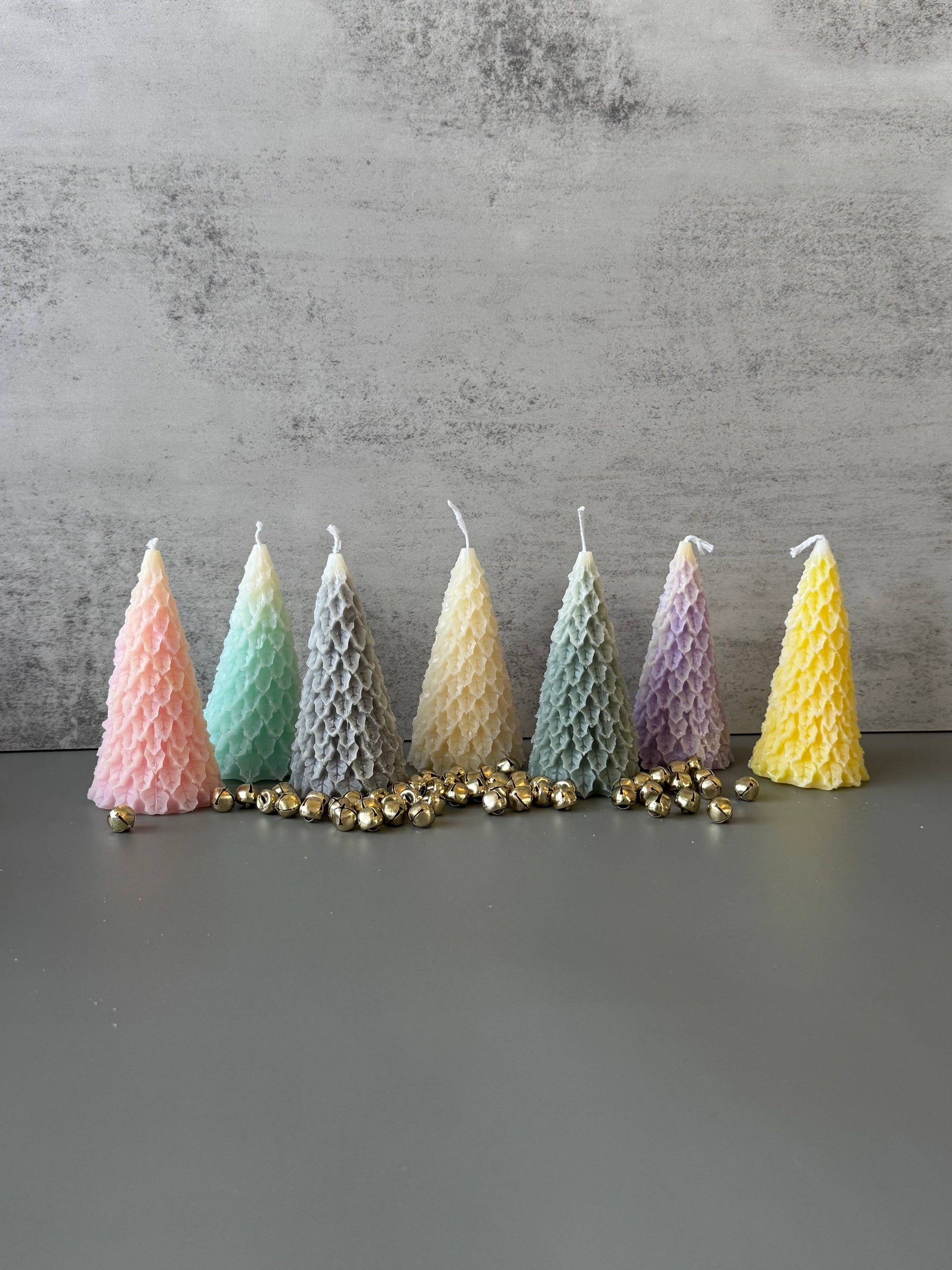 Cute little handmade retro style snowy tree candles. These candles measure about 4" tall and 1.75" wide (at the base) and come in various snowy colors.