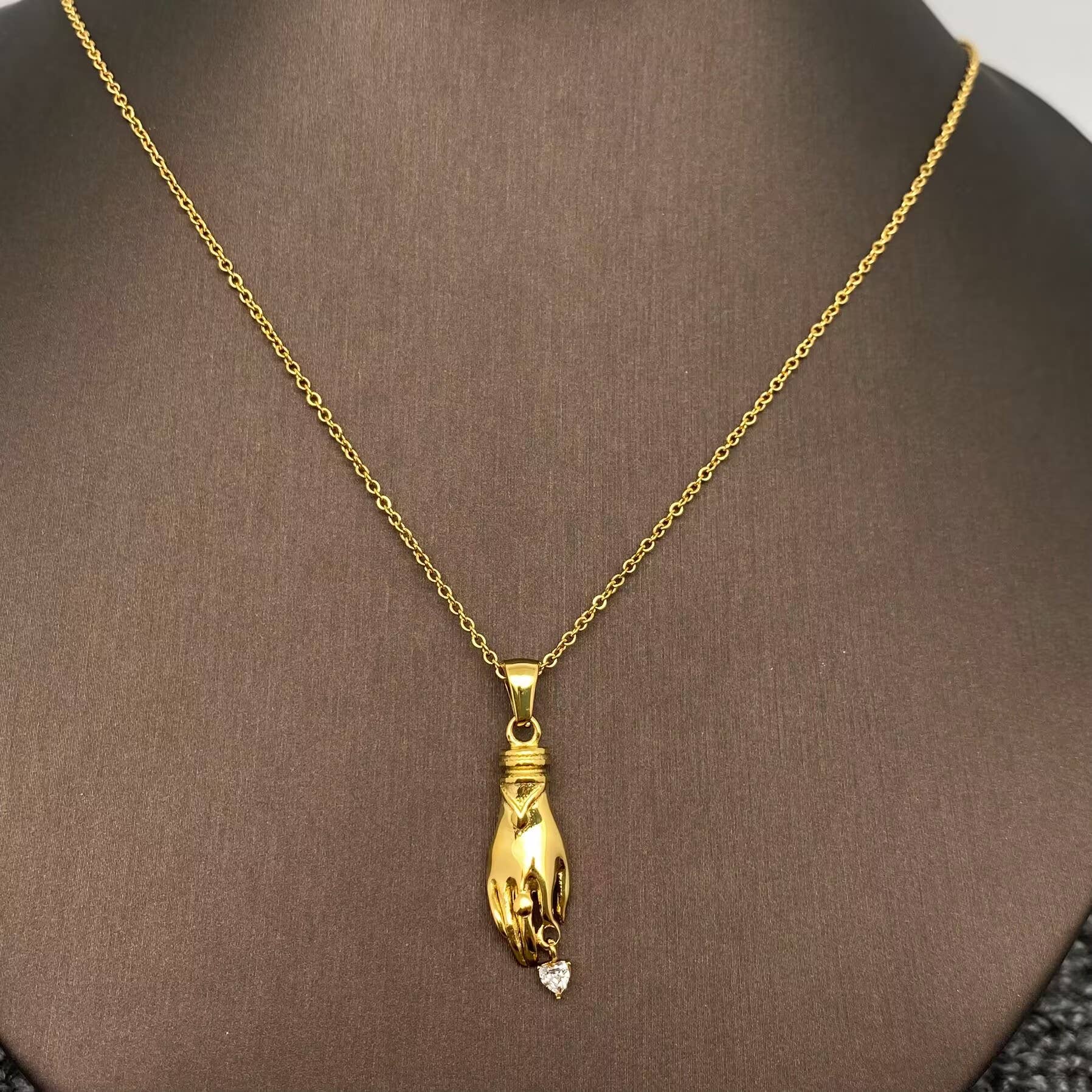 Type: pendant necklace Material: 316 L Stainless steel ,Cubic zirconia,18K gold plated Size of pendant : 10mm * 33mm Length of chain : 450mm + 50mm