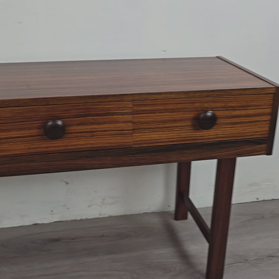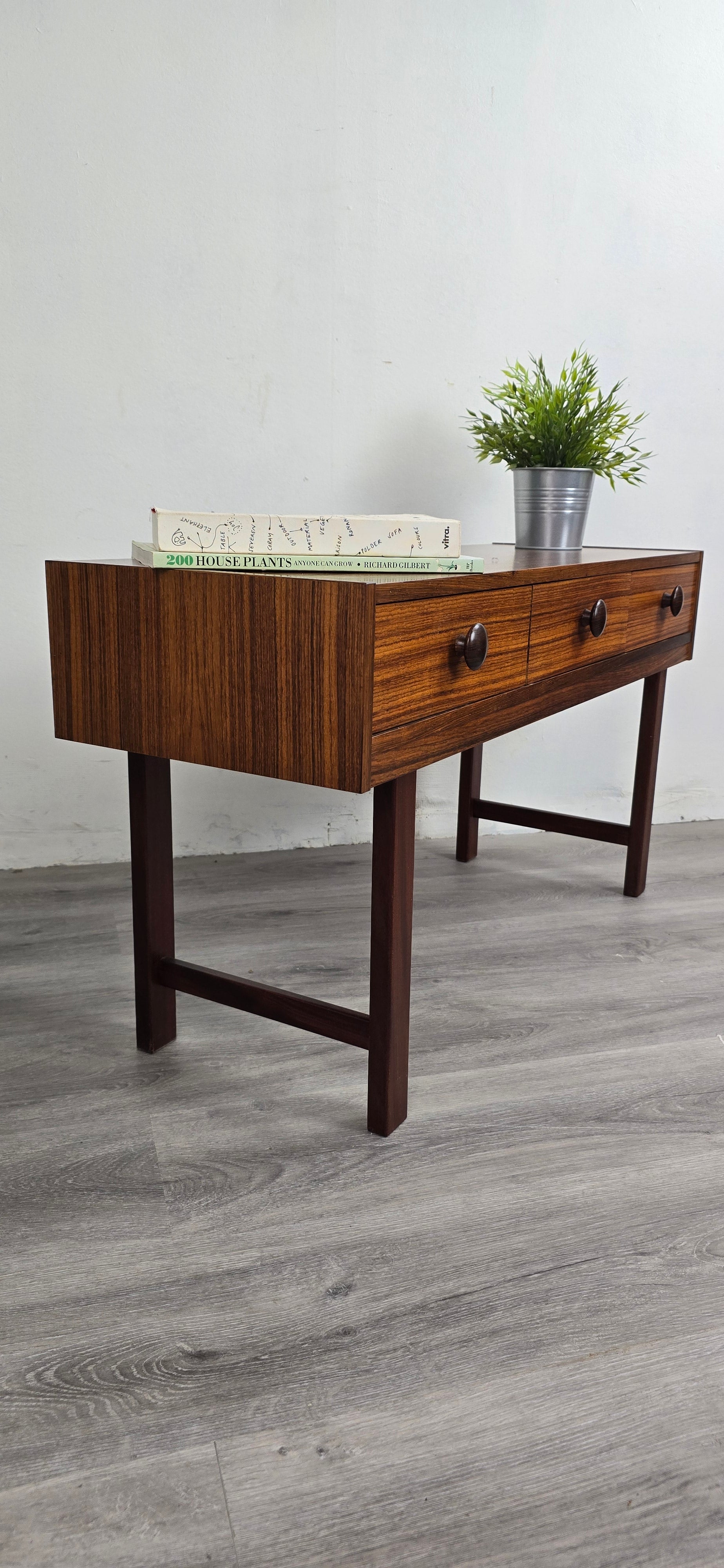 This fantastic petite hallway table was purchased in Denmark. The Rosewood has been professionally refinished.
