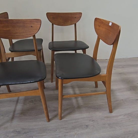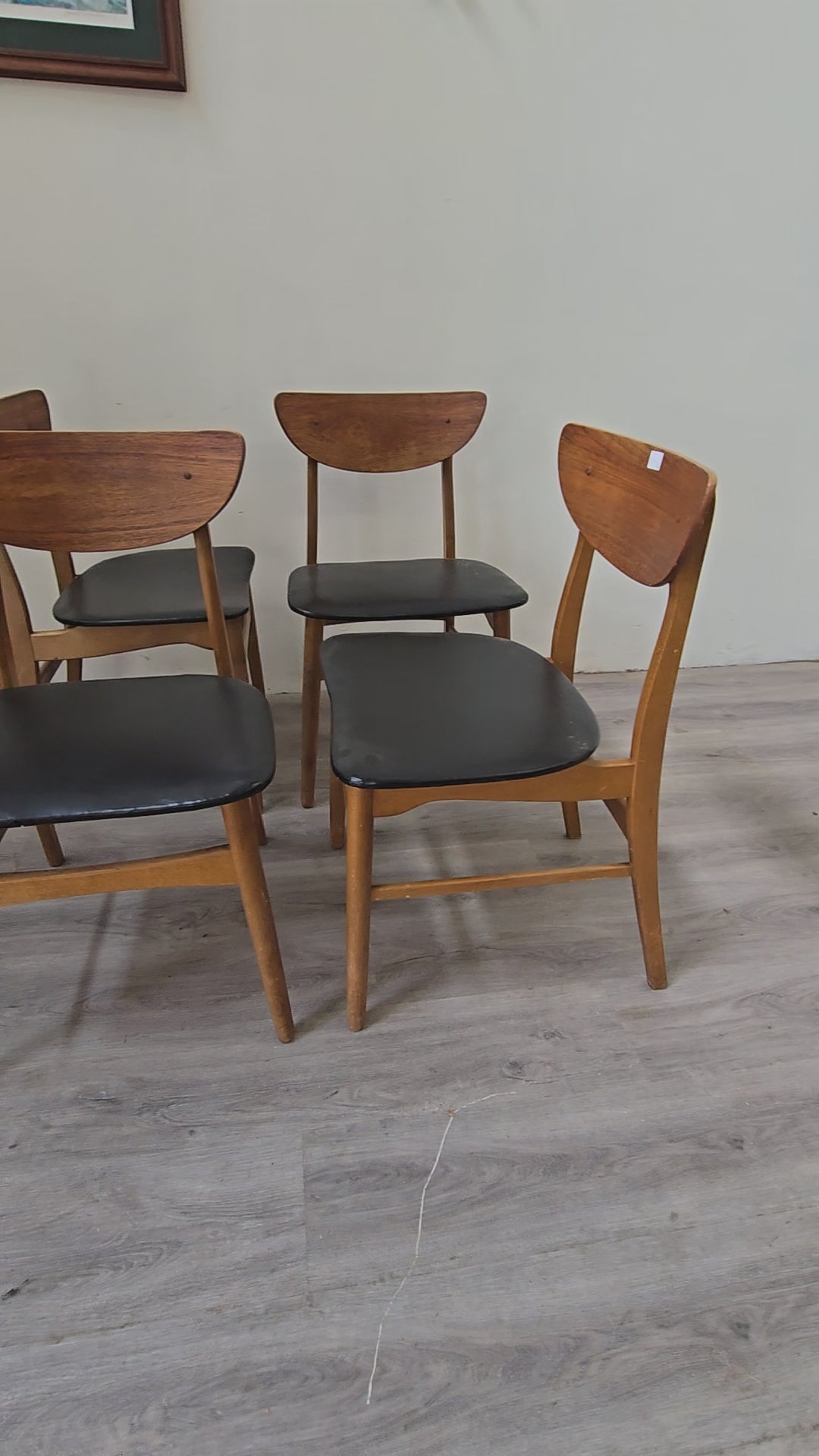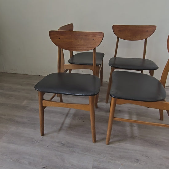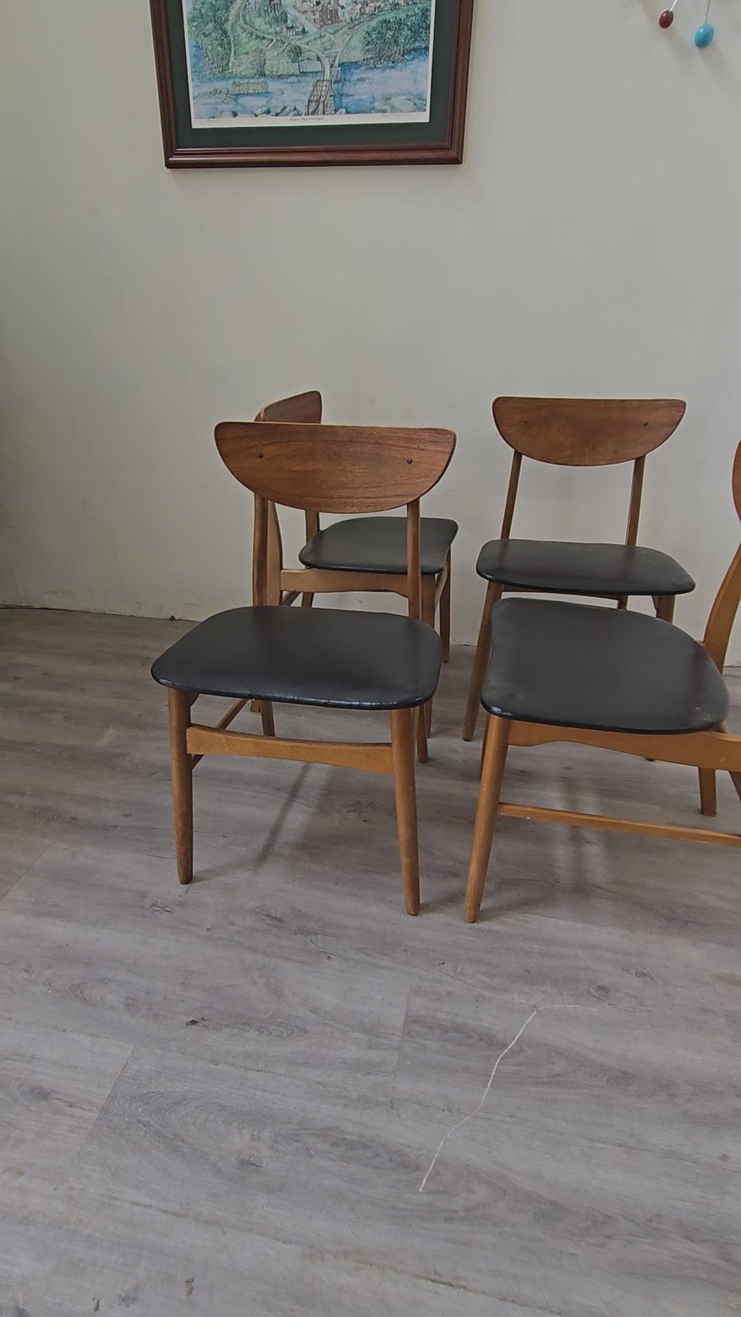 Set of four teak dining chairs recently imported from Denmark. Circa 1950s.