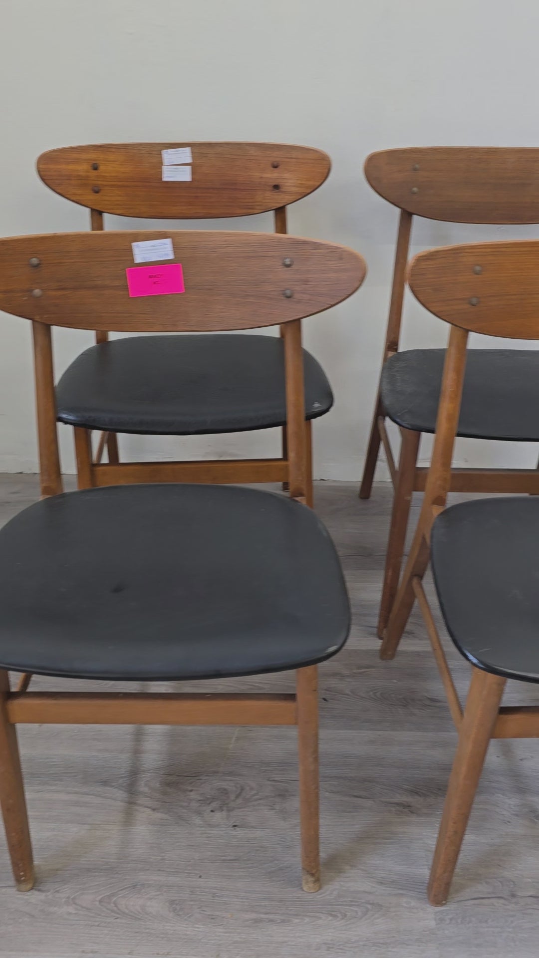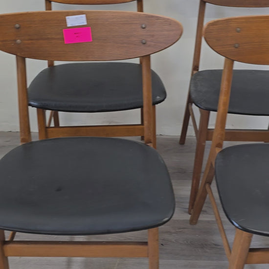 These teak dining chairs from FARSTRUP Mobelfabrik were recently imported from Denmark. They are from the 1960s and are in a found condition. Price includes professional refinishing and new black upholstery.