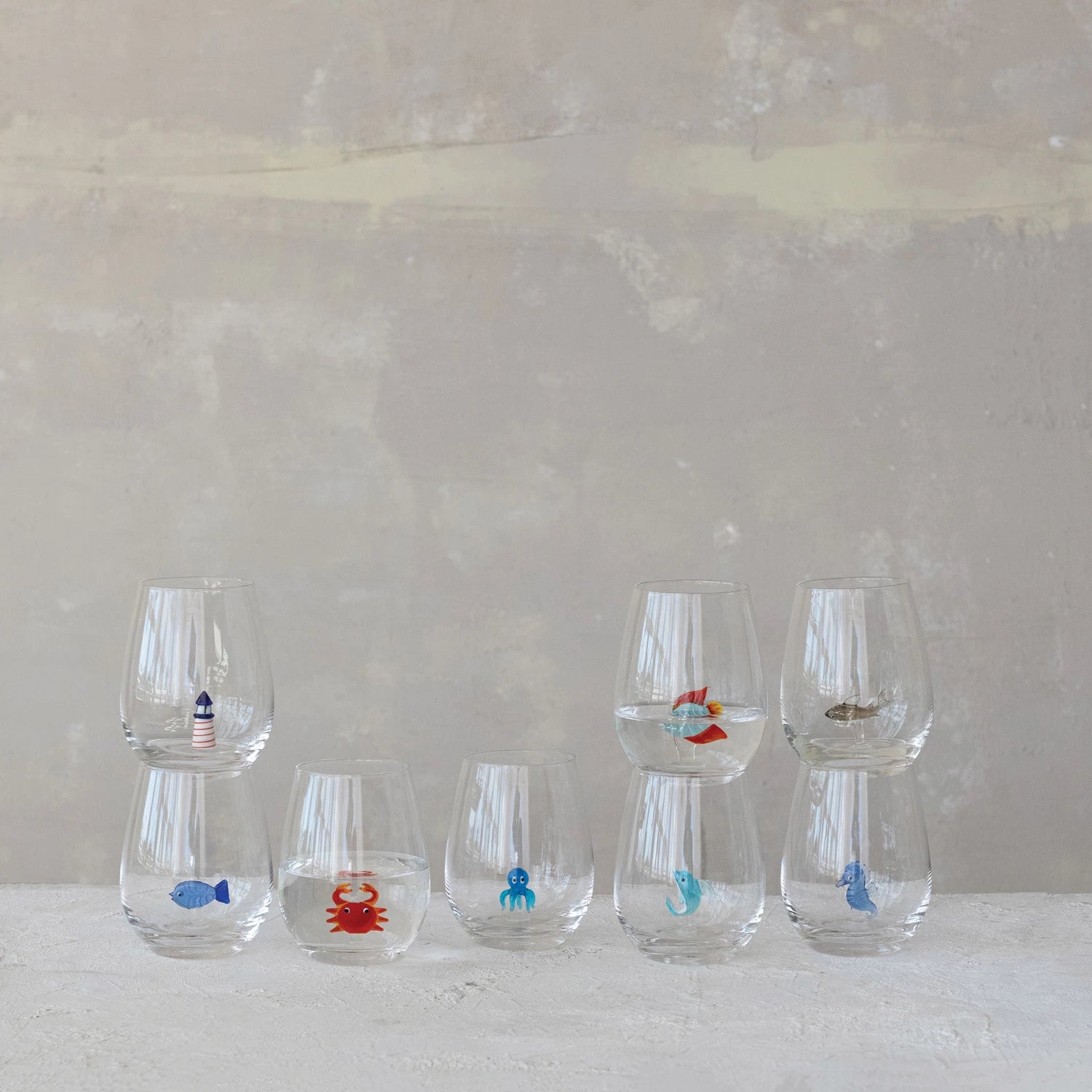 Adorable sea creatures adorn the inside of each wine glass. Perfect for a party or just to make every day a little more fun.