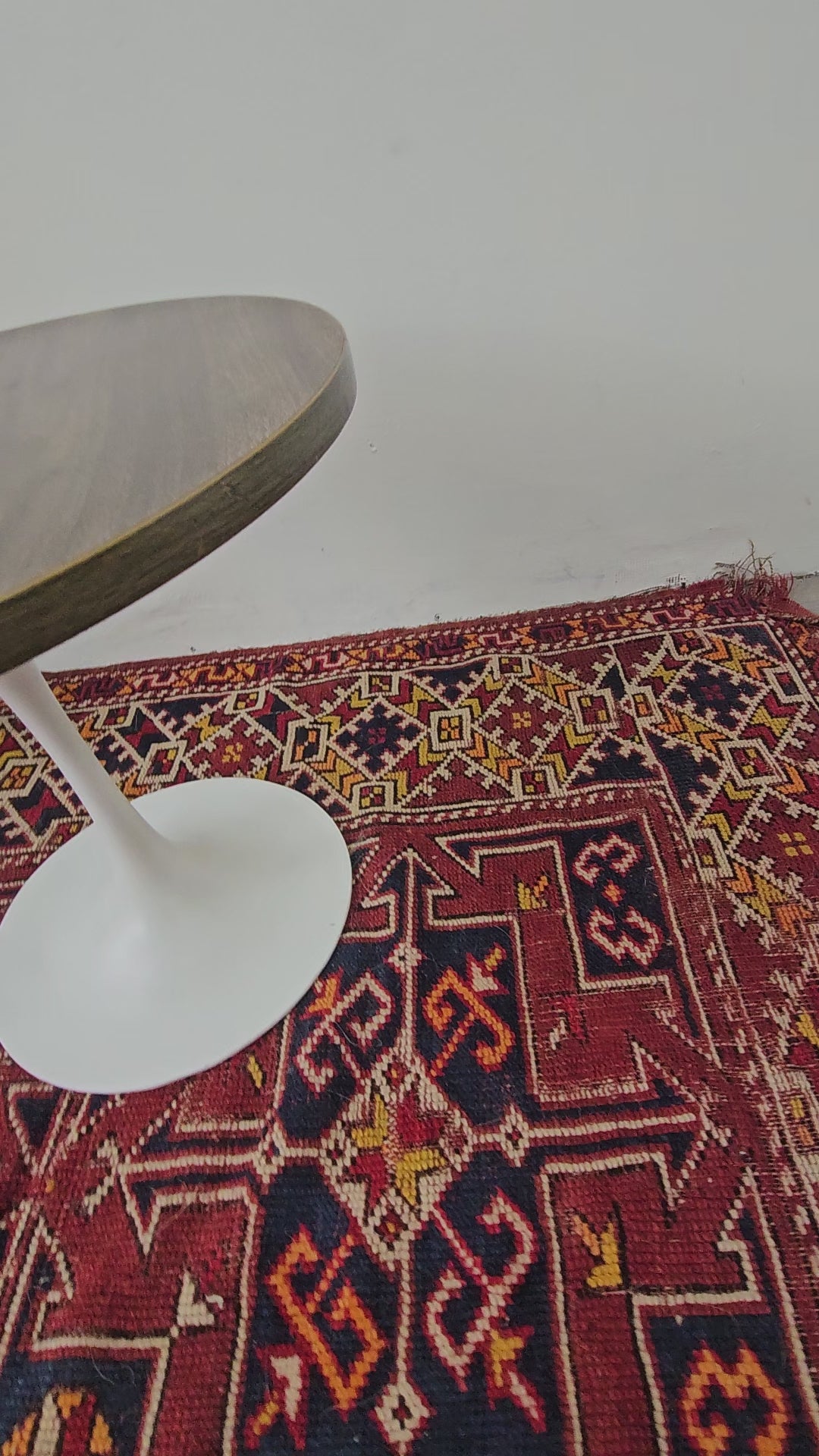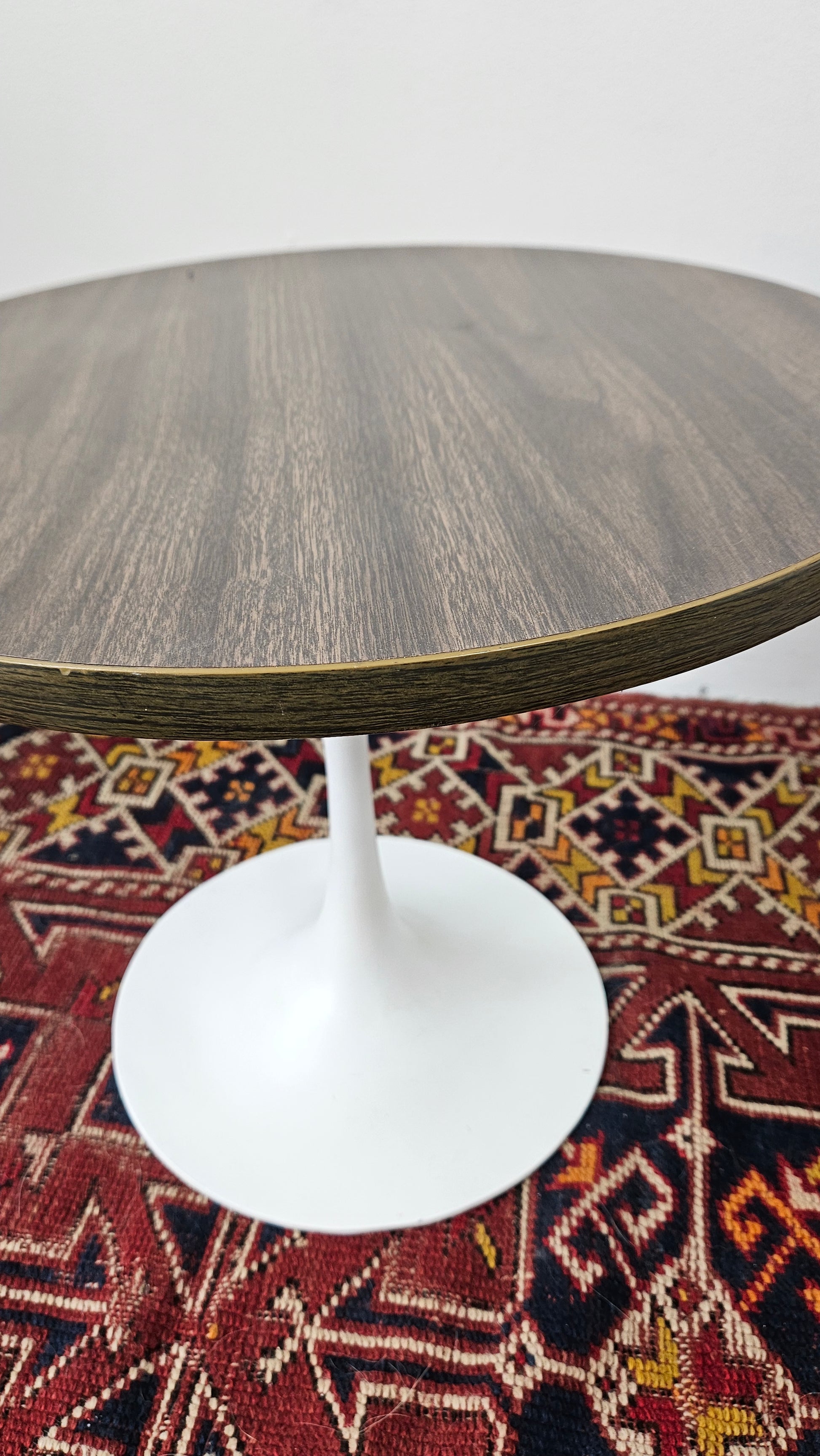This vintage tulip side table is circa 1970s. The heavy metal base has a finely tapered design with a laminate top.